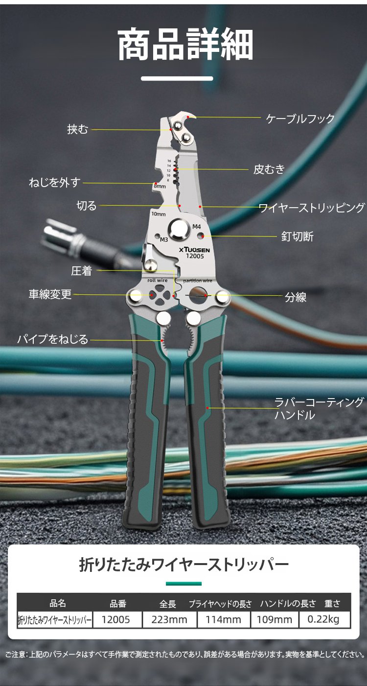 折りたたみ式多機能ワイヤーストリッパー